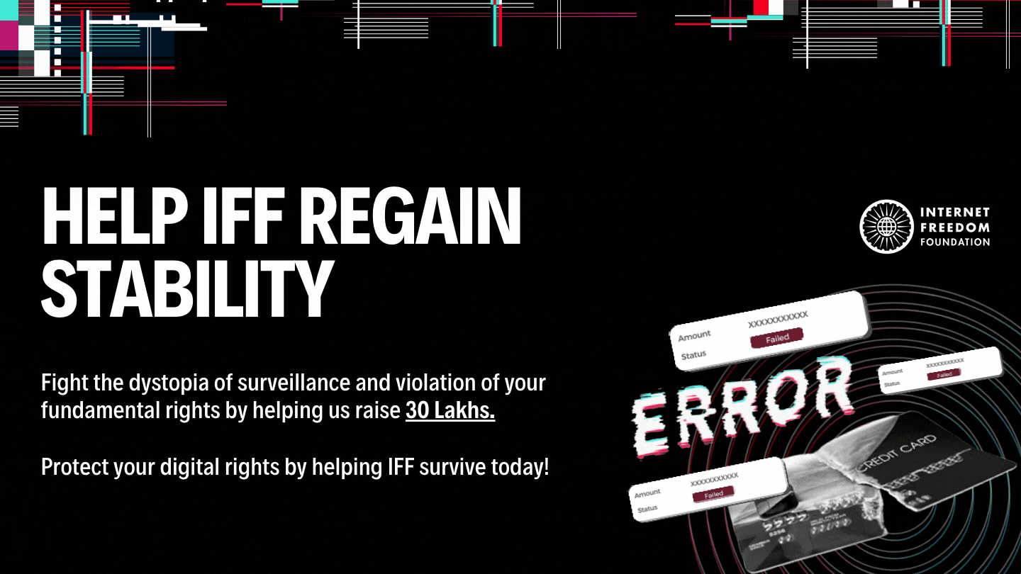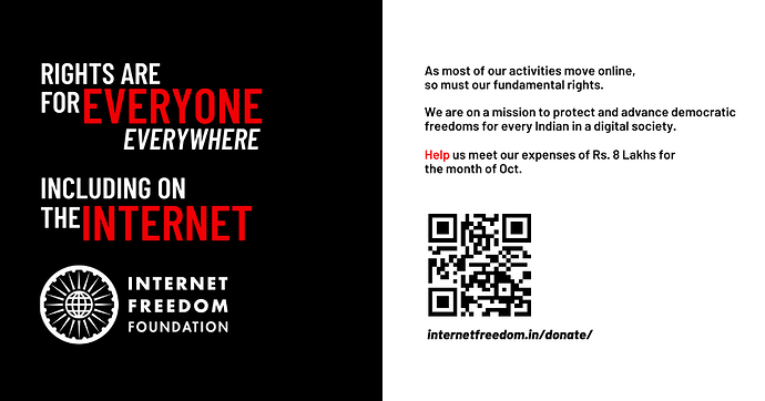 IFF needs your support to sustain itself as our monthly expenses for staff salaries, advocating in courts & operational costs are INR 6.84 Lakh which is higher than the donations we received last month. Become a member today or make a donation here: