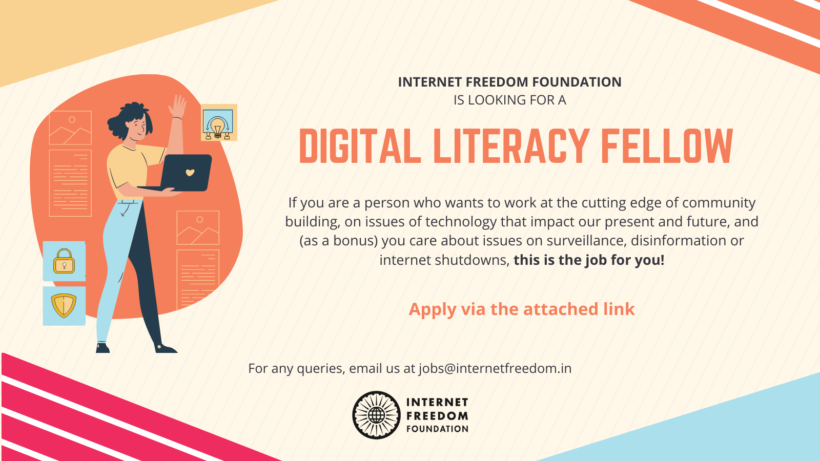 Hiring for a Digital Literacy Fellow at Internet Freedom Foundation!